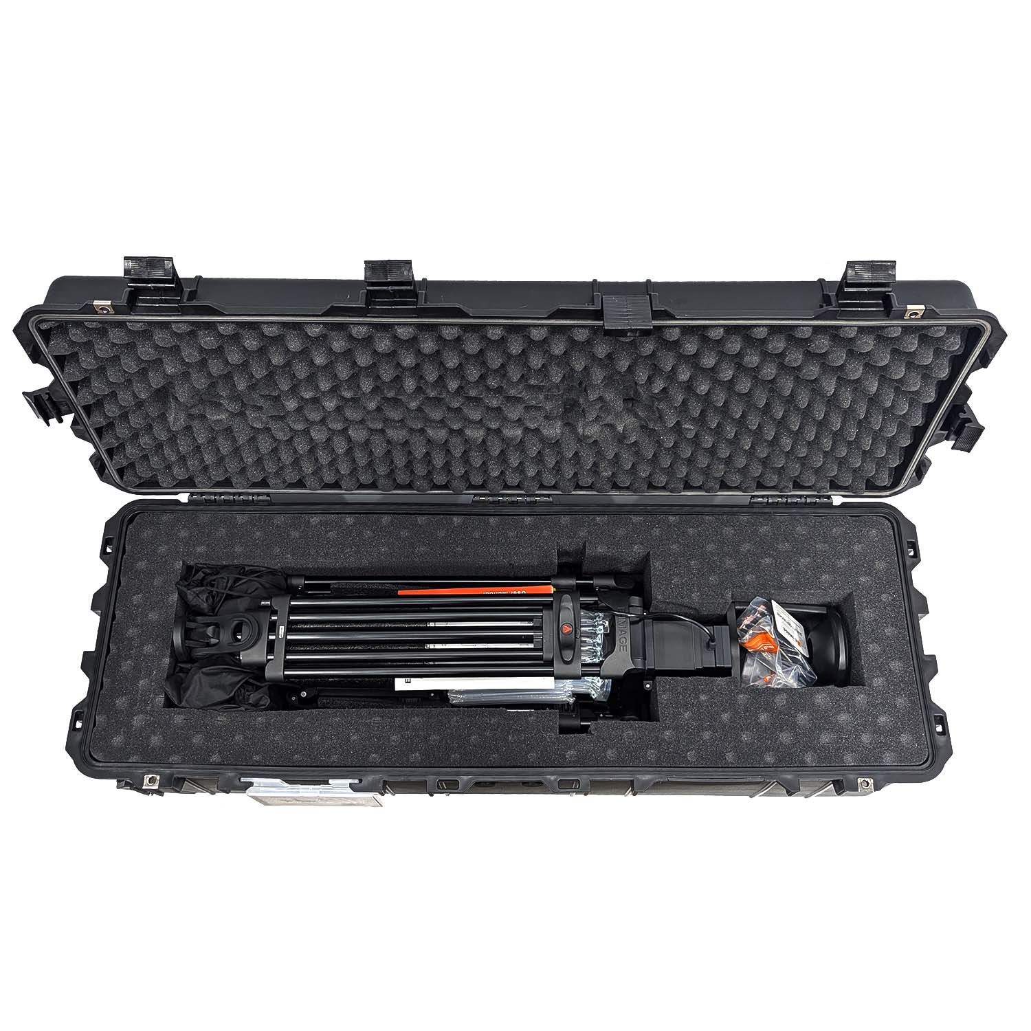 This motorized pedestal comes included with a padded foam hard case with wheels, making it ideal for travelling between different filming locations. The case has six locks and a folding handle.