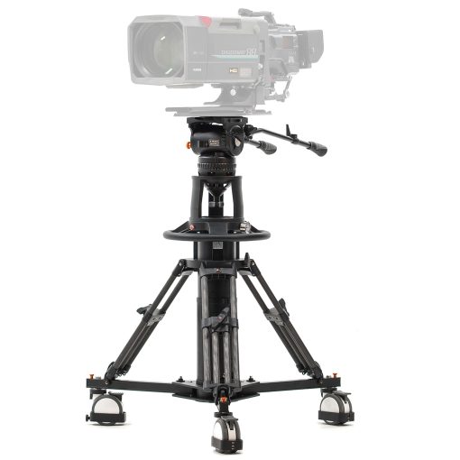 The dolly base has track lock wheels to maintain direction during complex dollying and tracking shots. By locking the wheels in certain positions, radial arc shots can also be achieved.
