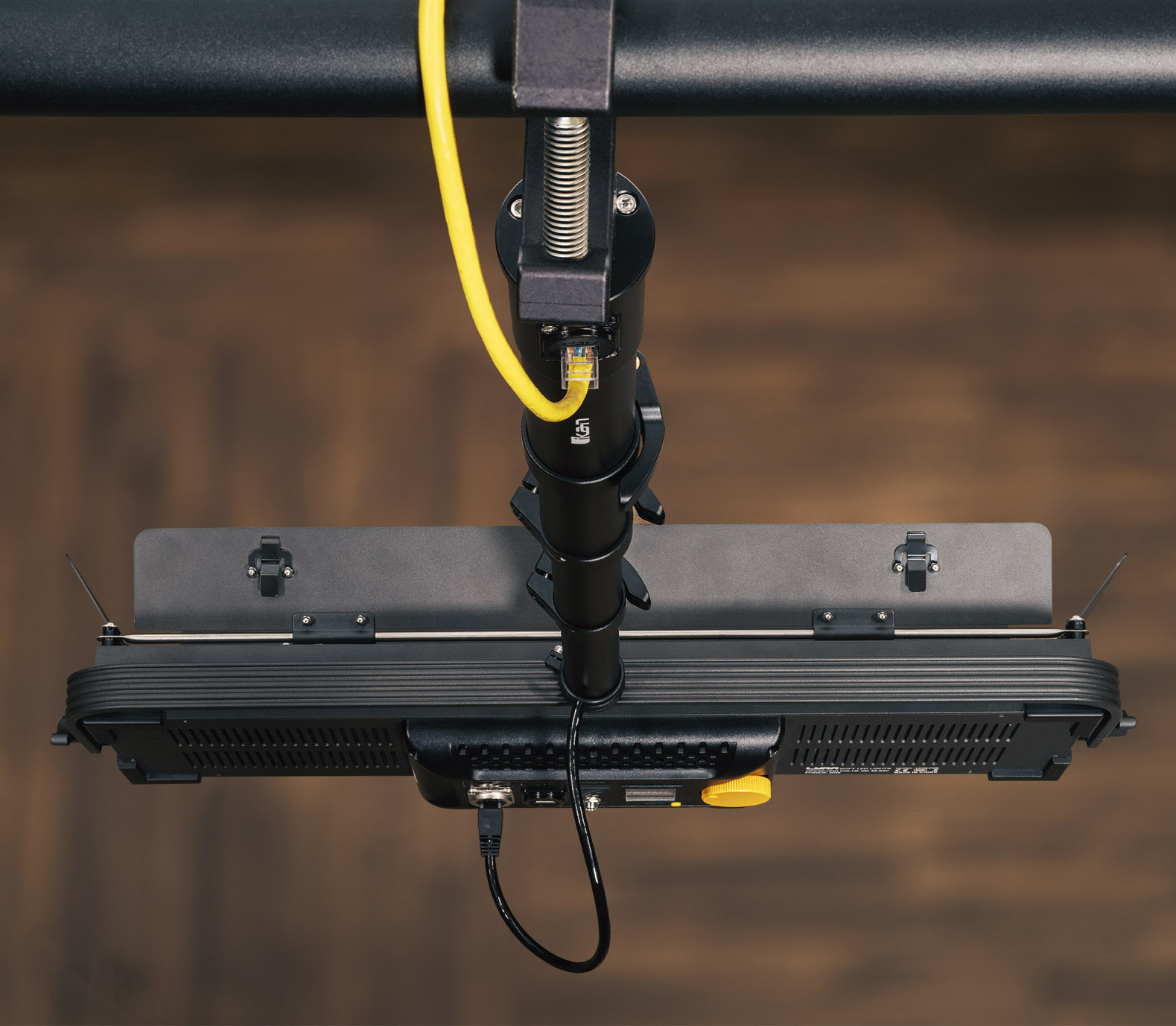 The LSH-POE includes an additional mounting plate with a female 1/4″-20 thread, expanding its versatility beyond use as a light hanger. This added mounting option allows the LSH-POE to function as a desktop light stand, integrate with an Ikan teleprompter, and adapt to a wide range of other setups. Designed for flexible deployment, it easily integrates into various production environments.