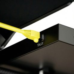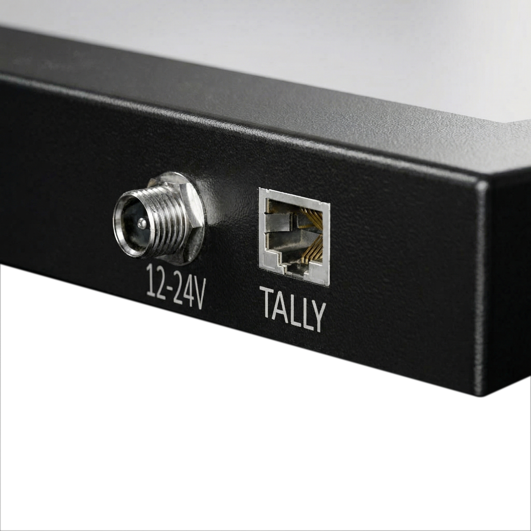 The prompter monitor features a tally light that illuminates red and green. A green tally light is typically used to indicate that a camera is in preview mode. This means that the camera’s output is being sent to a monitor, but it is not currently on air. This allows the talent, director, and production crew to check the composition, focus, and other aspects of the shot before it goes live. A red tally light is used to indicate when a camera is live or on-air.