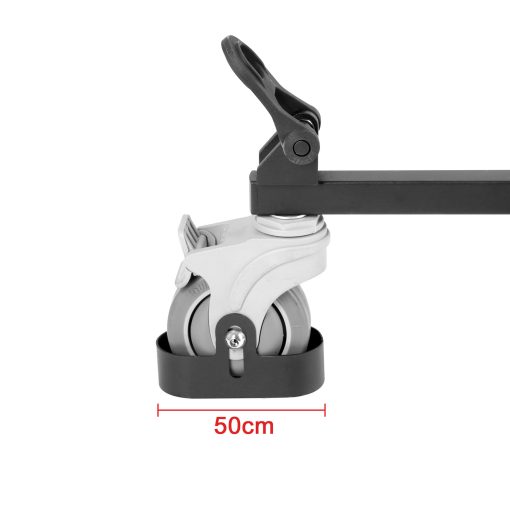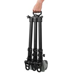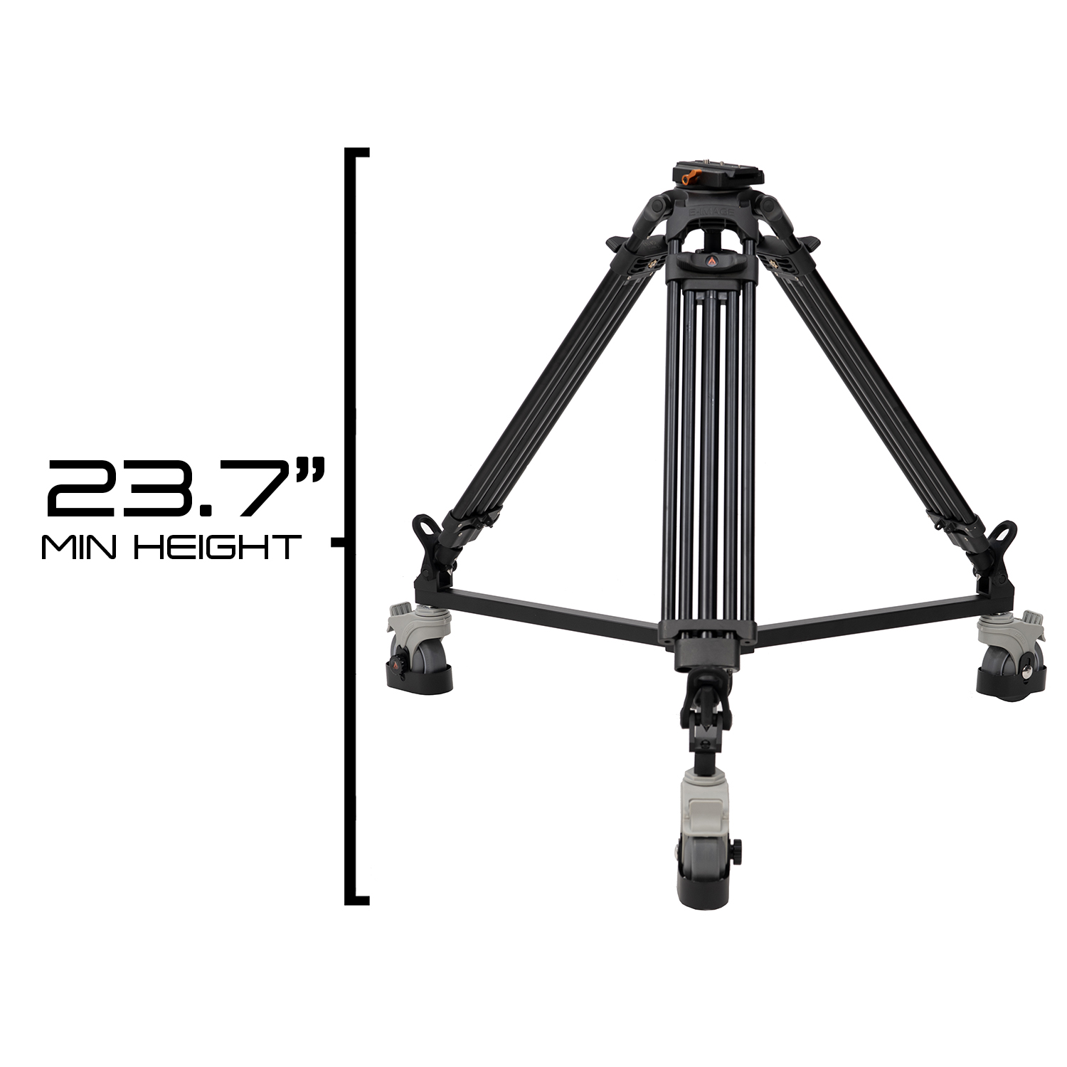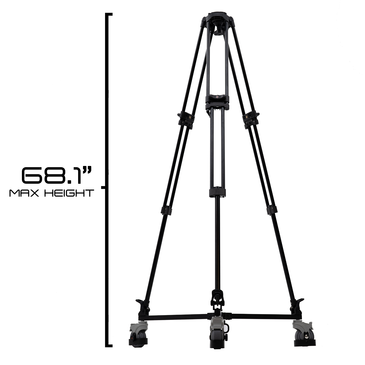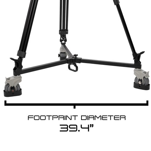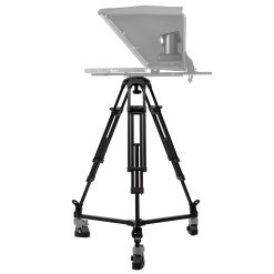 The remaining payload capacity, after mounting the full 19″ teleprompter, can accommodate camera setups up to 90 lbs. This solution also includes a rolling hard case for the teleprompter and carrying bags for the tripod & dolly.