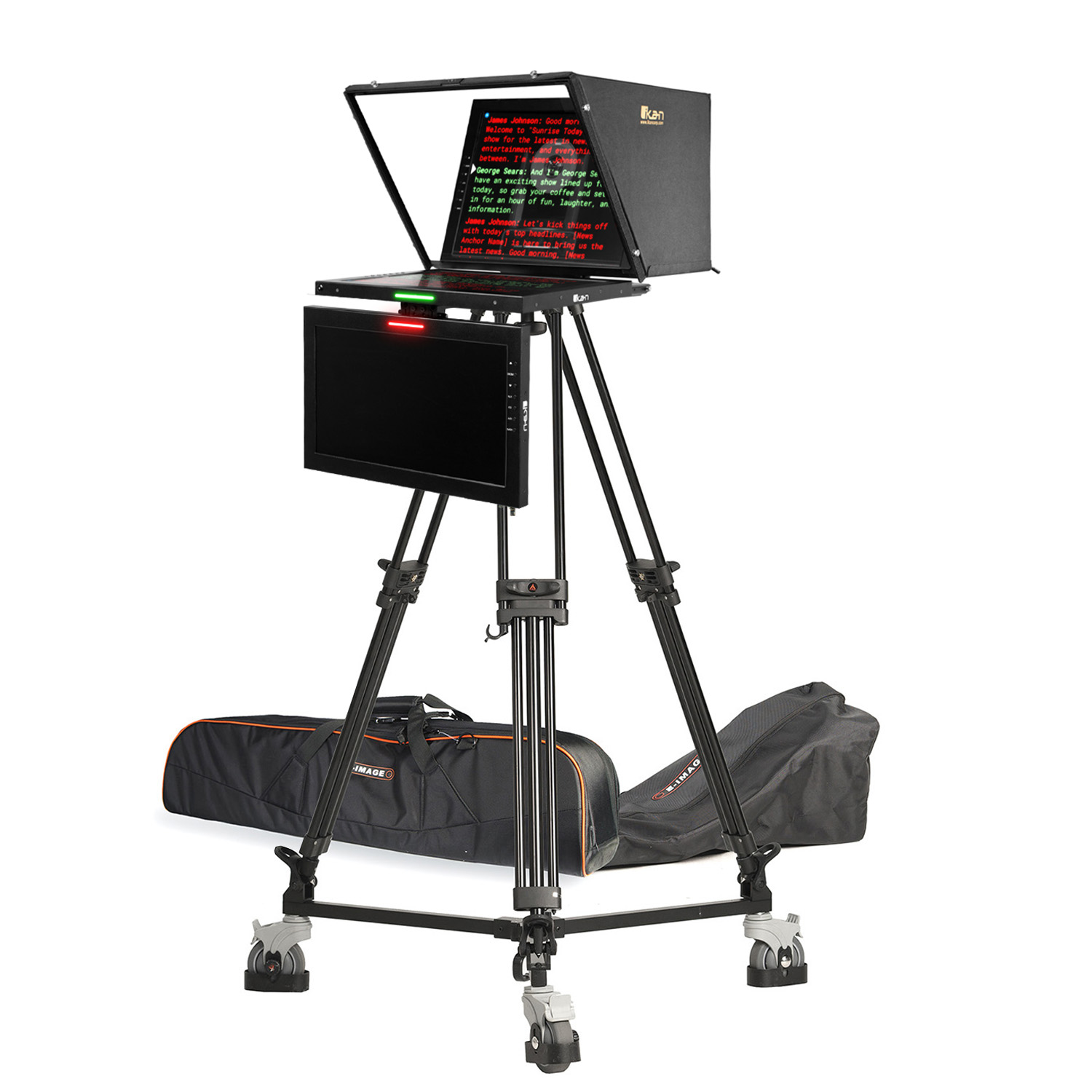 19″ 4:3 PTZ Teleprompter w/ 16:9 Talent Monitor, Tripod & Dolly Turnkey
