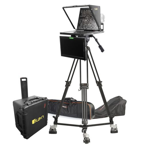 Ikan’s Turnkey Broadcast Solutions include everything you need for your professional camera setup. This solution includes a 19″ 4:3 teleprompter, 16:9 talent monitor, tripod, and dolly. All of our systems have been tested internally for payload compatibility.