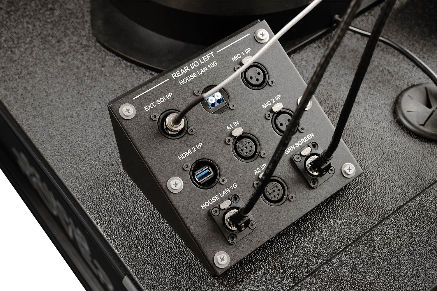 The STUDIO ROVER™ utilizes IP control for all components, including the PTZ camera, teleprompter monitors, LED panel, and height-adjustable center column, using various protocols such as NDI, IP Visca, and Art-Net or sACN. By utilizing IP protocols, we seamlessly integrated with Q-Sys, delivering a streamlined and user-friendly solution for corporate AV end users.