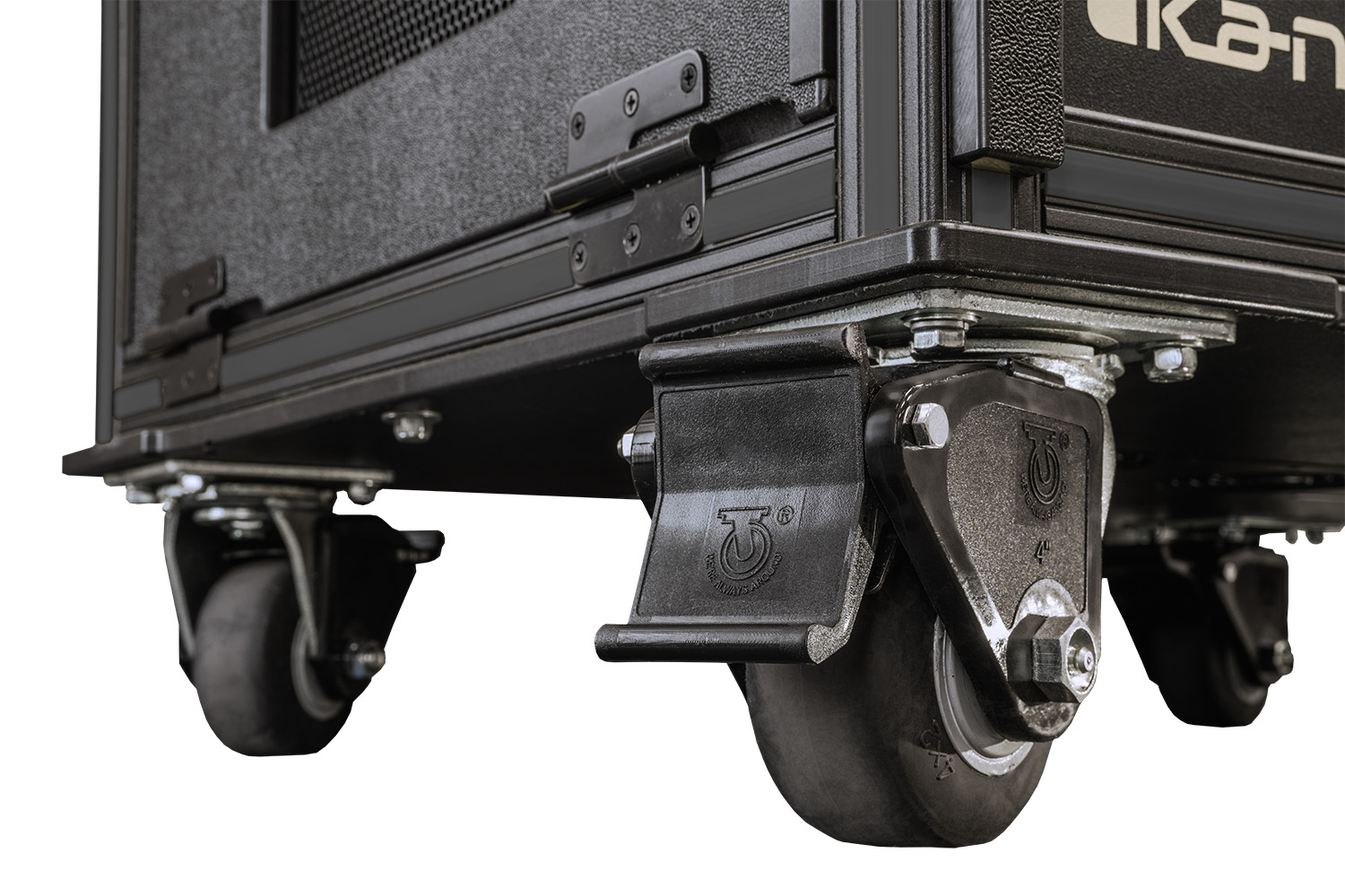 The 4” Casters are premium, heavy-duty wheels designed for smooth, multidirectional mobility, allowing effortless navigation of the rack cart across various surfaces in facilities, studios, or event spaces. Equipped with integrated locking mechanisms, they provide secure stationary positioning to prevent unwanted movement during setup, operation, or storage.