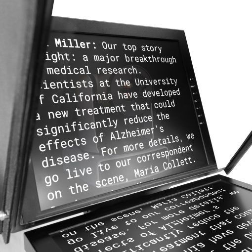 • Includes 19″ Widescreen SDI PTZ Teleprompter, SDI Widescreen Talent Monitor, Motorized Pedestal, & Dolly
